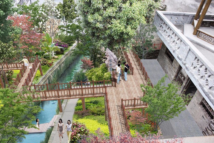 項(xiàng)目概況 :兩軸, 濱水生態(tài)文化體驗(yàn)景觀軸 古道歷史風(fēng)貌提升景觀軸 ;六心, 游客服務(wù)中心、衷家大院、羅家大院 長春溪澗古橋、北城門、福音堂